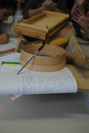 La nonna Rosanna ha risposto a molte delle nostre domande. Inizialmente ha detto che si produceva solo pane giallo fatto di farina di mais (che prevaleva sugli altri ingredienti), frumento e segale. L’impasto veniva preparato dalla mamma e dalle figlie il giorno prima; dall’impasto si ricavavano i lieviti (lievito madre) per la settimana successiva. Il giorno seguente si aggiungevano le farine lasciandole riposare alcuni giorni in contenitori chiamati “Marletta”.